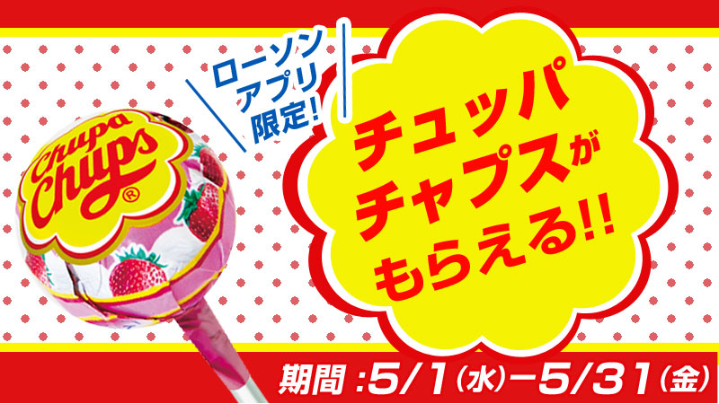 ☞ ローソンアプリで先着90万名に「チュッパチャプス」がもれなくもらえるキャンペーン詳細 はこちら