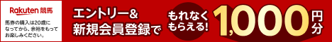 更に上記バナーでエントリー&楽天競馬に登録するだけでもれなく500ポイントがもらえます♪